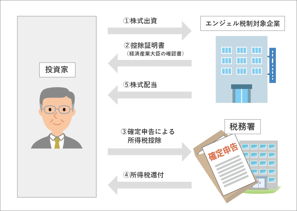 ベンチャー企業への投資を促進するために、「中小企業庁の認可を得たベンチャー企業」へ投資を行った個人投資家に対して、税制上の優遇措置を行う制度です。ベンチャー企業に対して個人投資家が投資を行った場合、投資時点と売却時点のいずれの時点でも、税制上の優遇措置を受けることができます。